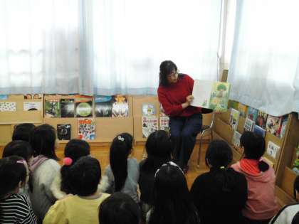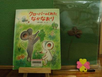 今年度最後の「お話宝石箱」の方による図書室での本の読み語りは,『クローバーのくれたなかなおり』でした。読み語りの後には,折り紙でのすてきな「四葉しおり」をプレゼントしていただきました。たくさんの本との出会いを通して幸せになってね。
