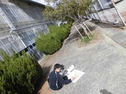 これまでの図工で学んだ力を使って,思い出の学校風景画をかきました。