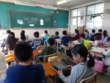 今日から,いよいよ新しい教室での学習が始まりました。朝から,子どもたちのようすを見てびっくり!ベルの合図ですっと本を選んで静かに読書タイムができていました。2年間の学習規律の積み重ねが感じられます。