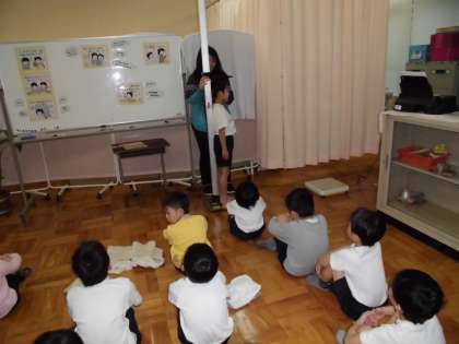 身体計測の前には保健室はどのような時に来る場所なのか,保健室での約束についての話をしています。