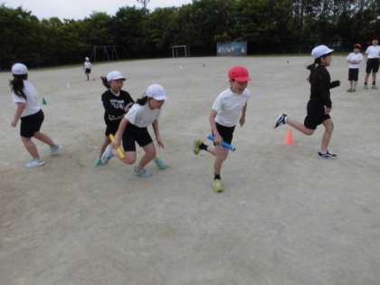 テーマは「仲間」。よりよいチームを創りあげる一員として,走る順番やバトンパスの工夫を考えたり話し合ったりしていきます。