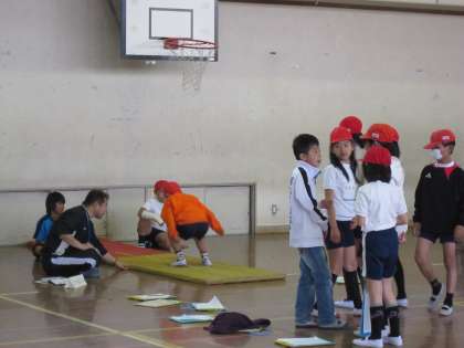 5年生は,2年生といっしょに新体力テストを行いました。2年生を手助けした後,自分達の体力を知るために実施しました。