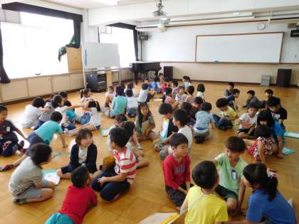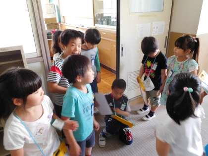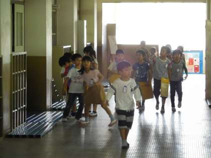 2年生と一緒に学校探検をしました。今までミニ学校探検しかしていなかった1年生ですが,2年生のお兄さん・お姉さんたちが,優しく手を引きながら小学校の特別教室や行ったことのない教室へ連れて行ってくれました。