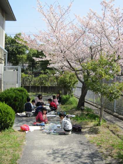 4年生は,「春を感じて」をテーマにして,サクラを描いています。同じ木を見ていても子ども達は一人一人感じ方が違い,一人一人違う絵が出来上がっていきます。