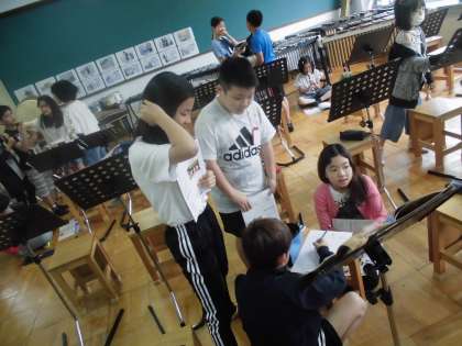 音楽の学習では,「星空はいつも」の「ミニミニ合唱合奏会」に向けて,練習が始まりました。発表会では,上の歌唱パートと下の歌唱パート,そしてリコーダーに分かれて演奏をします。現在,グループで音のバランスを考え,練習に取り組んでいるところです。5人で素敵なハーモニーをつくりあげていきましょう。