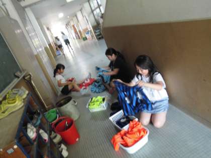 休み時間には,自分たちから体育用のビブスをたたむ姿が!