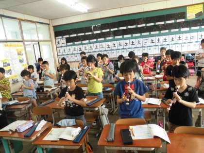 音楽のリコーダー演奏では「ソ」の音に取り組んでいます。
