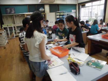 気体検知管を使って実験を行っています。酸素と二酸化炭素それぞれの検知管を検知器にセットして実験しています。