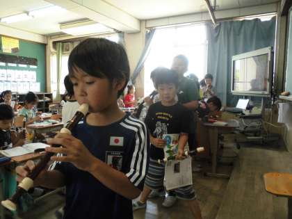 今日は歌のリズムに合わせてリコーダーの演奏をしました。