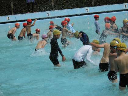 担任の僕もよく子どもとプールでコミュニケーションをとっています。