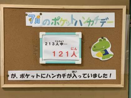 ご家庭でも,はんかちを持ち歩くように声をかけをお願いします。