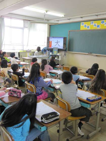 2年生は,この日「太」という漢字を学習しました。ICTを使って筆順を知り,空書き(空中に漢字を書く練習方法です)で筆順をみんなで練習したりした後,漢字の練習帳に書いていきます。