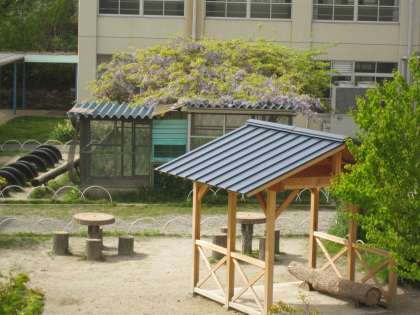 今年も,中庭のふじ棚で,ふじの花がきれいに咲いています。