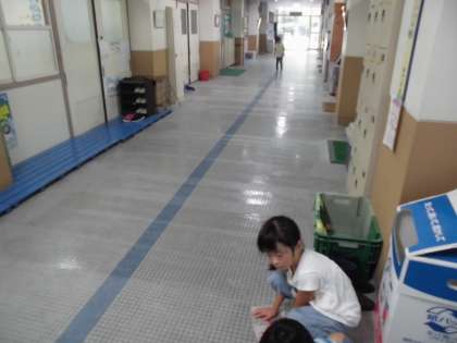 廊下の雑巾拭きのあとを見ると・・すごくピカピカ!!