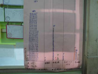 社会科ではクラスの「一週間買物調べデータ」が完成しました。