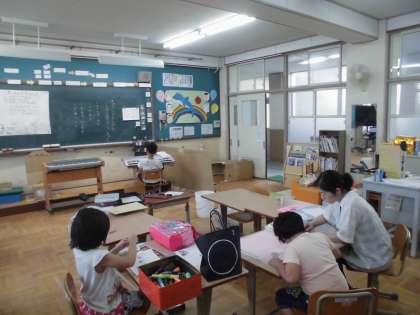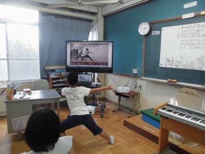 今日の5時間目は,お話の絵の下がきや,想像したことを絵に表すなどの図工をしている子と,音楽の交流に向けて練習をしたり,ロックソーランのおどりを懐かしく思い出しながら練習したりしていました。