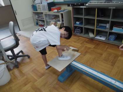 図工では,弟のためにいすをつくろうとして,いっしょうけんめいのこぎりを使って板を切っていました。それぞれのめあてに向かって一生けんめいがんばるすがたが見られました。