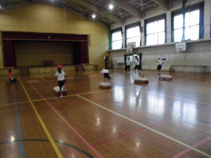最初は,走順と学年種目の内容だけを説明する予定でしたが,さすが2年生!!テキパキと行動し,しっかりと話を聞いてくれたので体育館で実際に練習することができました。