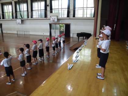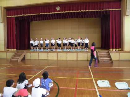 敬老の日の集いに向けて頑張っている2年生。今日は,練習2日目でしたが体育館で行いました。入場から退場まで通してしましたが,練習2日目とは思えないくらいの出来に驚きました。