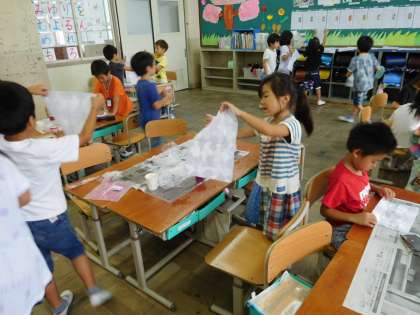 アサガオを使った色水遊びをしました。きれいに染まった色の水に,子ども達は「きれい!!」ととても喜んでいました。