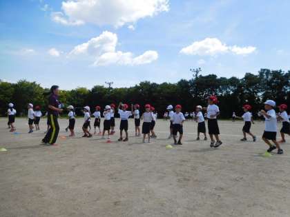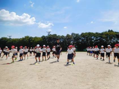 2年生のお兄さん・お姉さんとの団体演技の練習も、運動場での練習に入ってきました。練習場所がいつもと違うので、少し戸惑っている感じでしたが、一生懸命に練習を頑張っていました。