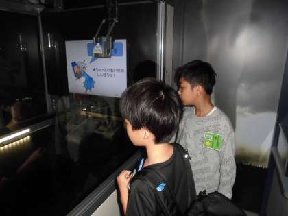展示をみてまわる学習では,いろいろな観察や実験のふしぎを体験しました。自分で竜巻をつくる装置には,できたとき興奮していました。