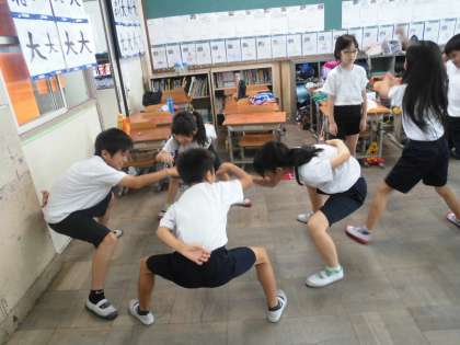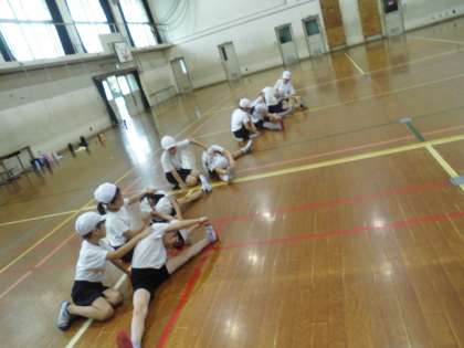 柔軟ストレッチもしてみました。おどろくほど体がかたい子もいました。