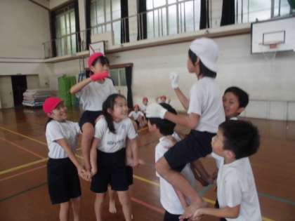 これは,5年生学年種目「令和FSBの乱」の練習の様子です。学年種目では,50mハードルリレー,騎馬戦,スペシャルマッチを行います。熱い戦いが繰り広げられていますが,安全には注意です。