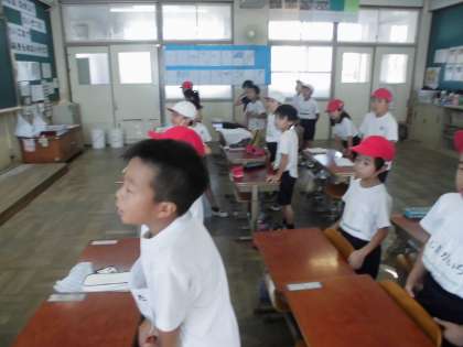 2年生は,この曲が流れるといつも元気よく歌ってくれます。赤組と白組に分かれて歌うところがあり,どちらの色も気持ちが入っています!