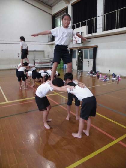 組体操ではタワーややぐらをたてて,最後まで通して練習することができるようになってきました。