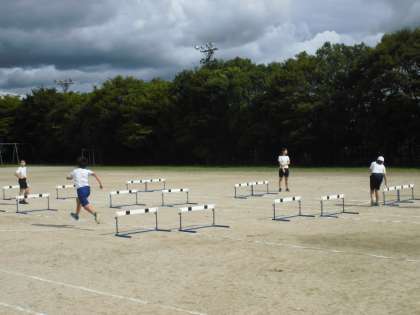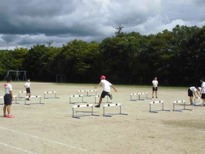 運動会に向けてハードルの練習を行いました。子どもたちは,回数を重ねるごとに,練習の取り組み方や跳び方がスムーズになってきています。「低く跳ぶ」「足を速く下ろす」「前傾姿勢をとる」などのポイントを意識しながら,「もっと走りたい。」「やった速くなった!」と懸命に練習する子どもたち。さぁ,あとはいよいよ本番です。赤も白もがんばれー!!