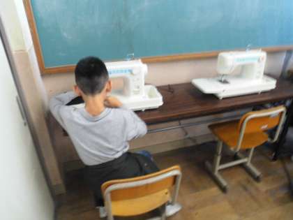 家庭科の学習では,ミシンを使ってウォールポケット作りを始めました。ぬいしろやポケット部分のゆとりを考えて,直線縫いを進めています。「最初と最後は返し縫い」「しつけ縫いはミシンで縫う所と重ならないように」など,気をつけることはたくさんあります。友だちの助けも借りながら,鋭意制作中!来週から,毛糸での飾り付けも本格的に始まります。