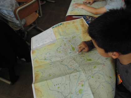 社会の授業の始めには京都市地図で遊んでいます。