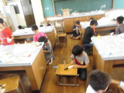 図工では段ボールカッターの次は「金づち」とTRY。