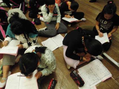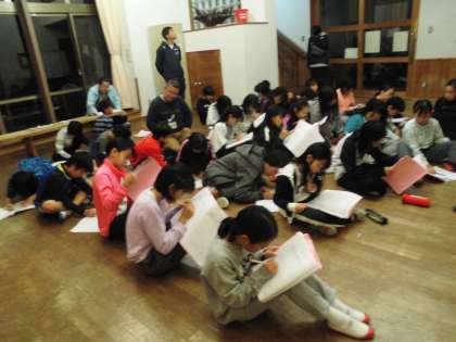 お風呂に入り,さっぱりしました。今日の活動のしめくくりは「ふりかえり」です。まず一人一人が自分の活動を振り返ります。