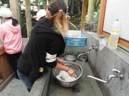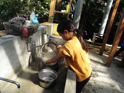 今日のお昼は2回目の野外炊事です。さすが2回目と言うこともあり,手際のいいこと!さっと手分けして動き始めました。上手にお米をとぐこともできます。