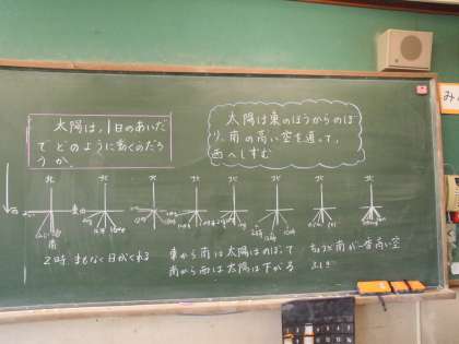 理科での太陽の観察実験のため何度も運動場に移動しました。
