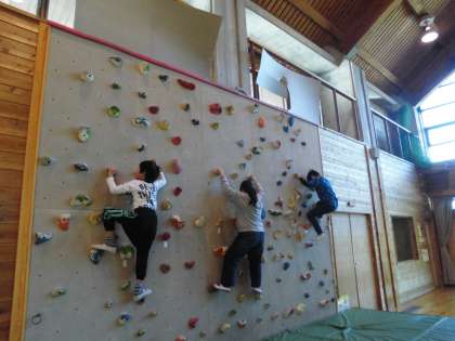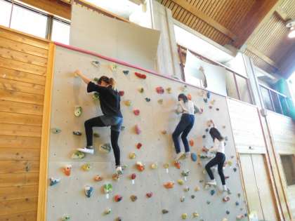 最初は低い壁を登ります。どうやったら安全に登れるか教えてもらいました。何回も練習を繰り返す人もいましたよ。みんなやる気いっぱいです。
