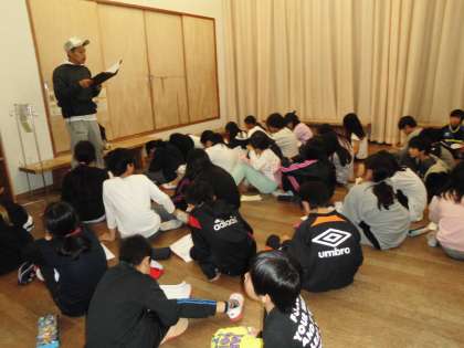 キャンプファイヤーのあとは,みんなで1日を振り返りました。今日の活動で多くの成果がありました。しかし,変えていかなければいけないところも,自分たちで考えることができました。この振り返りを明日の活動に生かせるようにしましょう。