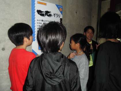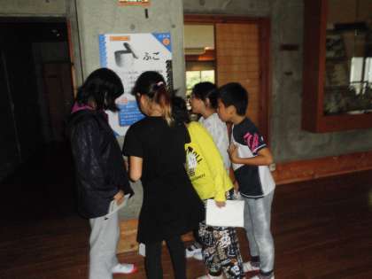 各グループに一つずつ不思議な形をしたキーを渡しました。まず,そのキーがぴたりとあう問題のパネルを探し出さなければなりません。パネルを見つけたらそれで終わりではなく,そこに書いてある問題を解くのです。問題も難しそう!ここでもみんなの協力が大事です。
