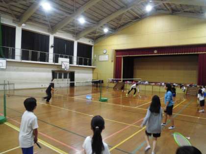 花背山の家の宿泊行事をサポートしてくれたボランティアの2人はバドミントンが上手ということから,山の家から帰ってきた直後にもかかわらず,バドミントン部の練習に参加してくれました。強烈なスマッシュやテンポの良いラリーに大歓声。また来てほしいですね。