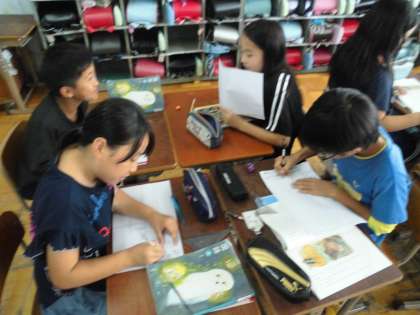 どないや!の写真です。これは国語科の「大造じいさんとガン」の学習の様子です。多くの人の考え方や読み方に触れて,物語の魅力を見つけてほしいという思いから,交流を主に行っています。