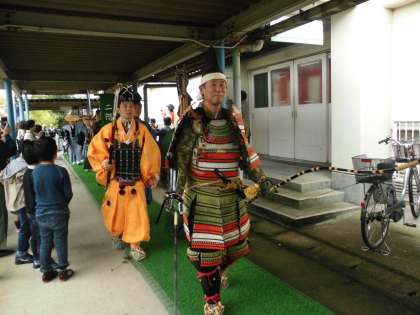 いろいろな役があり,立場によって衣装や持ち物が異なります。これからバスにのって京都御所に向かい,御所から平安神宮まで巡行します。みなさん,いってらっしゃい!