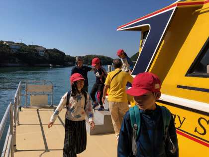 バスから船に乗り換えてみさきの家にある「なかよし港」に到着しました♪