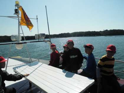 とてもよい天気に恵まれ,暑いくらいです。ここからみさきの家の「なかよし港」を目指します。