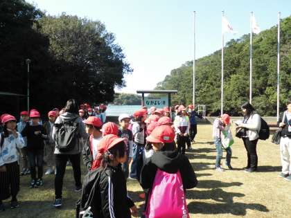 約40分ほど船に乗りみさきの家に到着しました。みさきの家の先生方が迎えてくださいました。カメラマンさんも待っていてくださっていますよ。ここから歩いて昼食の場所に向かいます。