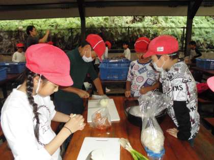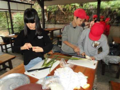 これから今日の夕食を作ります。学校でも練習しましたが,今日は本番!失敗するわけにはいきません。役割を決めてみんなで協力して作業を進めています。おいしくできますように・・・。