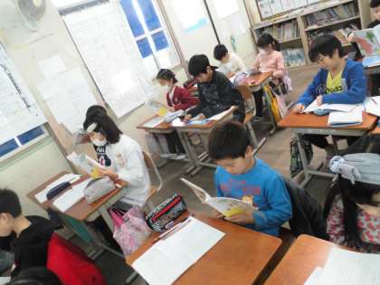 授業の始まりは音読です。何も言わなくても何度も繰り返し読んでいました。