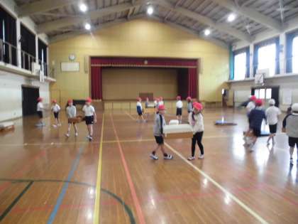 一時間目から「とびばこ」をしました。朝からとても寒い中でしたが,さすが2年生。まだ,一度しか場作りを経験していませんが,今日は前回より早く準備することができました。