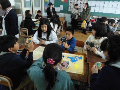 今日の自由参観で一番子どもたちが盛り上がりを見せたのが,この「ビディ」というカードゲームでした。島津製作所の方に来ていただき,生物の多様性について学びました。そのことをもとにしたカードです。本日,プレゼントとして持って帰っています。お家で一緒にやってみてください。